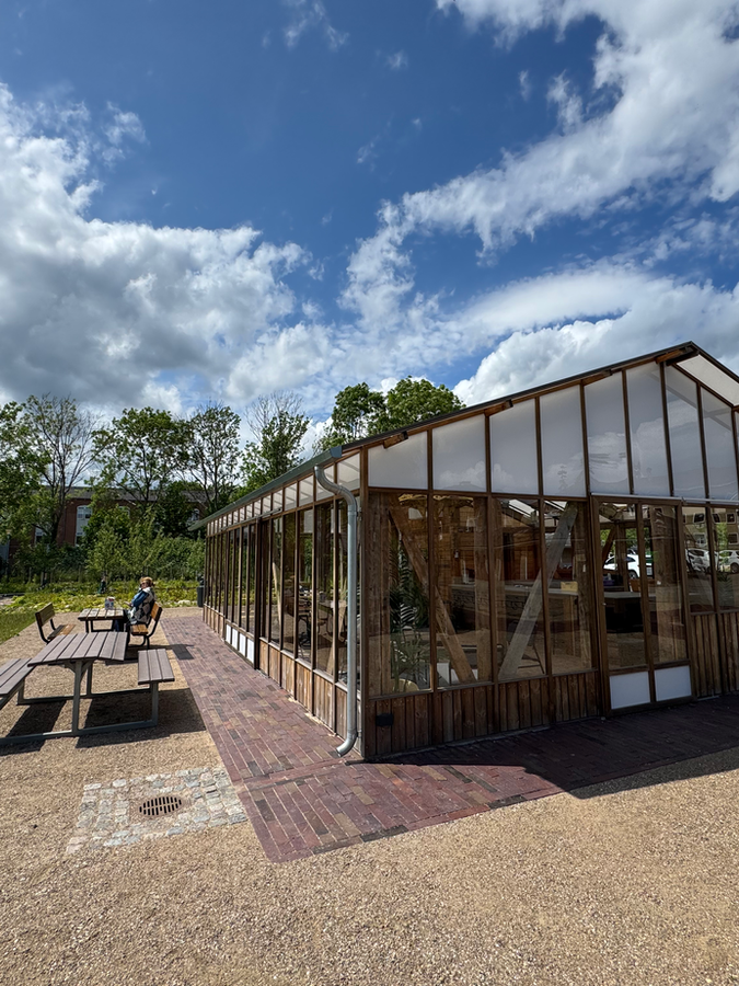 I Margrethehaven har Næste leveret et stort orangeri – et projekt uden for vores normale sortiment og falder derfor ind under vores Fri Design linje. Orangeriet er blevet til i tæt dialog med bygherre, rådgivere og områdets beboere, og resultatet er et unikt fællesrum skabt af 100 % genbrugsmaterialer.